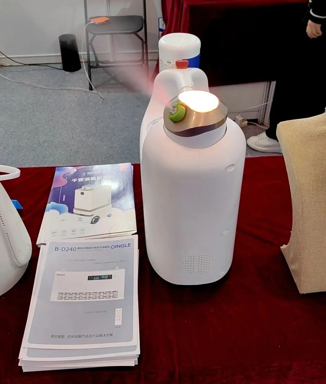 清乐移动式空气消毒机特点:(1)人机共存,安全可靠,无臭氧威胁。