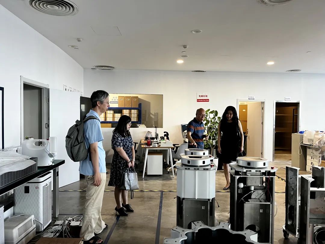 尚超女士一行在清乐公司高管们的陪同下来到公司产品区,参观了清乐智能消毒产品,尚超女士一行对清乐公司特色技术和产品表示赞赏。