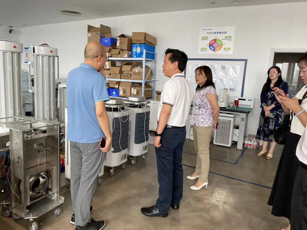 清乐公司总经理张克军陪同领导参观公司产品区,了解和观看了清乐智能消毒产品。在现场,领导们仔细询问了清乐的市场情况和产品的关键技术,对清乐公司未来发展充满期待。