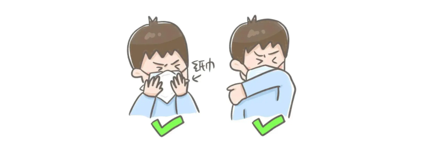 2、咳嗽、打喷嚏时用纸巾、手绢或者用手肘遮住口鼻,尽量扭身躲开别人,这样能够防止飞沫喷溅到更远的距离。