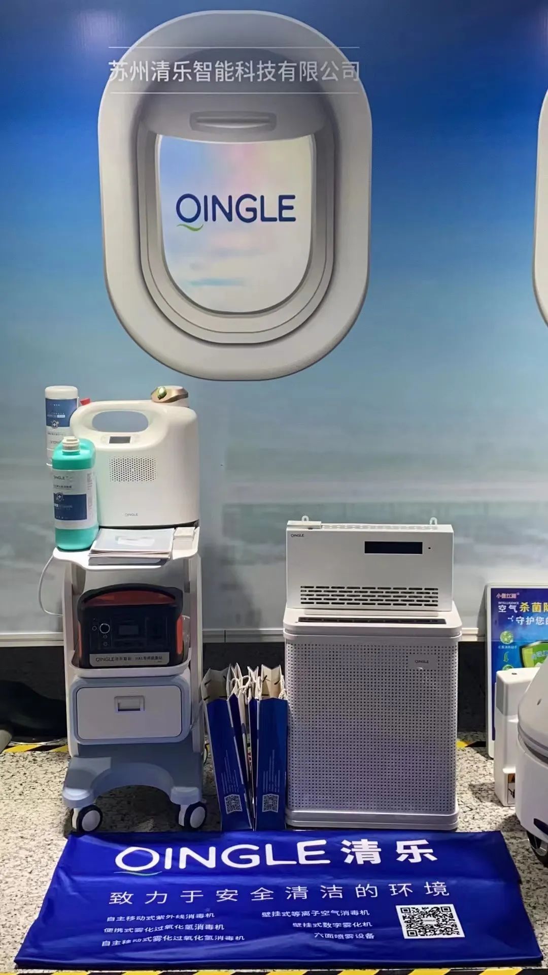 苏州清乐智能科技有限公司作为入围的企业之一,受邀参加此次科技赋能疫情防控应用场景科技展,本次亮相科技展的有清乐雾化过氧化氢消毒机、壁挂式等离子空气消毒机、移动式空气消毒机。