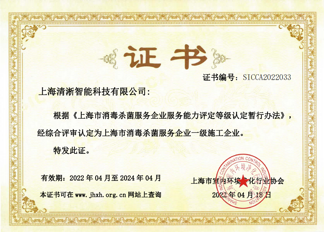 消毒杀菌企业一级施工企业——清淅
